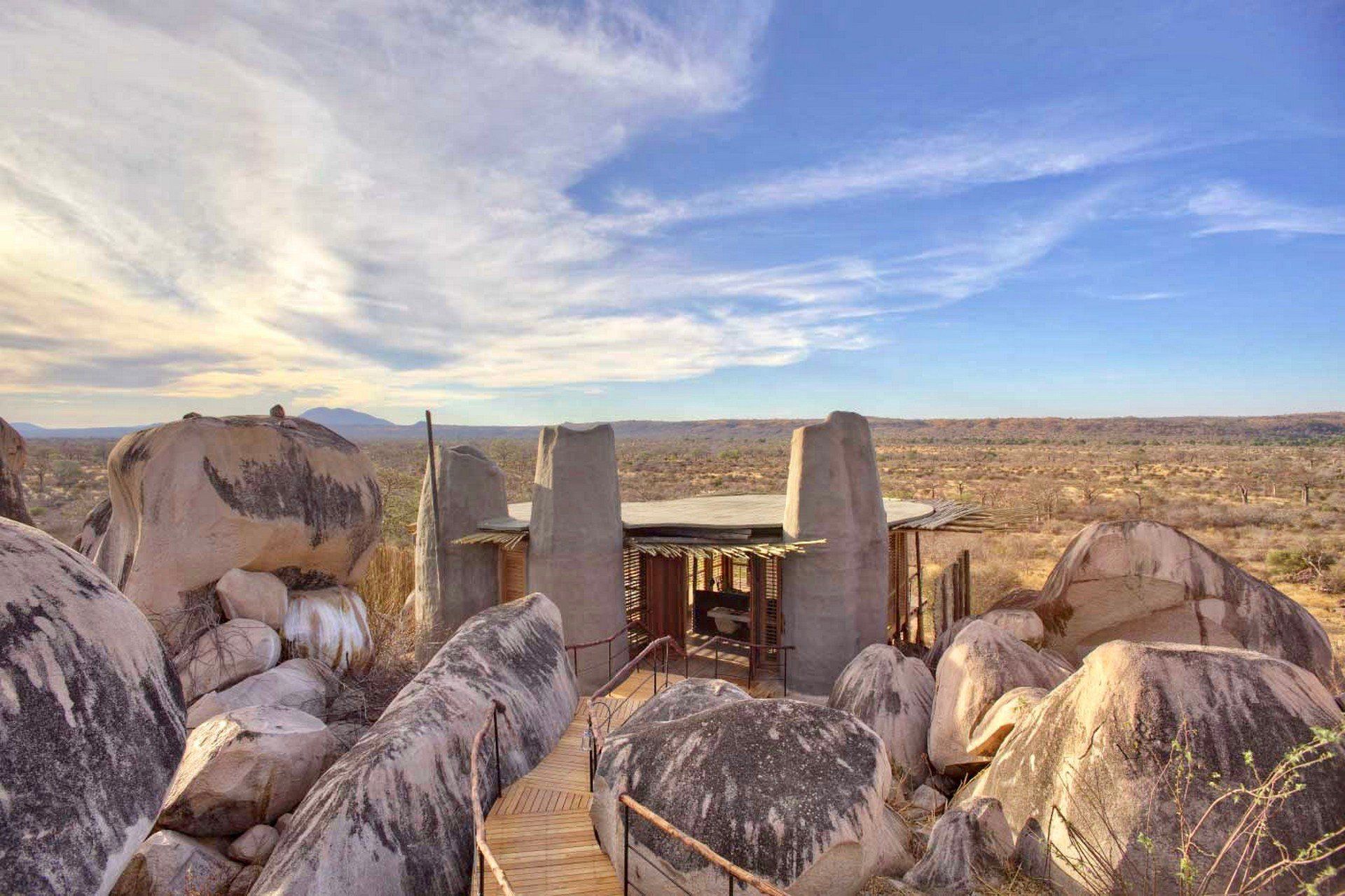 Jabali Ridge is one of the most luxurious camps in all of Ruaha National Park. Set high on a rocky kopje, with extensive views over the beautiful baobab forest, all the way to the Mwagusi river.